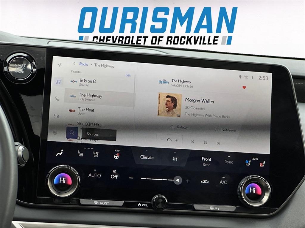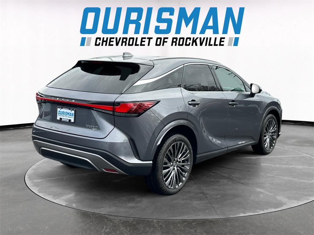 This 2023 Gray Pearl Lexus RX 350 Luxury AWD is well equipped and includes these features and benefits:.21/28 City/Highway MPG APPLE CARPLAY/ANDROID AUTO, BLIND SPOT MONITORING, LANE KEEP ASSIST, SMART BRAKE SUPPORT, RADAR CRUISE CONTROL WITH STOP & GO WITH SPEED LIMIT ASSIST, HEATED LEATHER STEERING WHEEL, NAVIGATION, PREMIUM SOUND, HEAD-UP DISPLAY, PANORAMIC MOONROOF!!, HEATED & VENTILATED SEATS, POWER REAR LIFTGATE, 360 DEGREE VIEW MONITOR, PARKING SENSORS, AWD, Black W/Black Open Pore Artificial Leather, 10-Way Power Driver & Fr Passenger Seat Adjusters, Accessory Package (Z1), Cargo Net, Carpet Cargo Mat, Cold Area Package, Finish Plate Door Inner Garnish, Head-Up Display (HUD), Key Gloves, Luxury Package, Multi-Color Illuminated Entry System, Navigation System, Parking Support Alert/Brake, Wireless Charger, Wood Steering Wheel w/Paddle & Heater. 2.4L I4 PDI Turbocharged DOHC 16V LEV3-SULEV30 275hp 8-Speed AutomaticYou can count on Ourisman Chevrolet of Rockville to provide the best selection of Pre-Owned vehicles in the area, and many still under FULL Factory Warranty. Contact us today for your virtual demonstration by one of our Pre-Owned sales professionals through Facetime or WhatsApp, or visit our website https://www.rockvillechevrolet.com/VehicleSearchResults?search=preowned#close for our latest incentives! Used & Certified vehicle Prices do not include tax, tags, title, freight/destination, registration, electronic filing fee, processing fee of $800 (Not required by law), and iKon (Optional $1,295.)