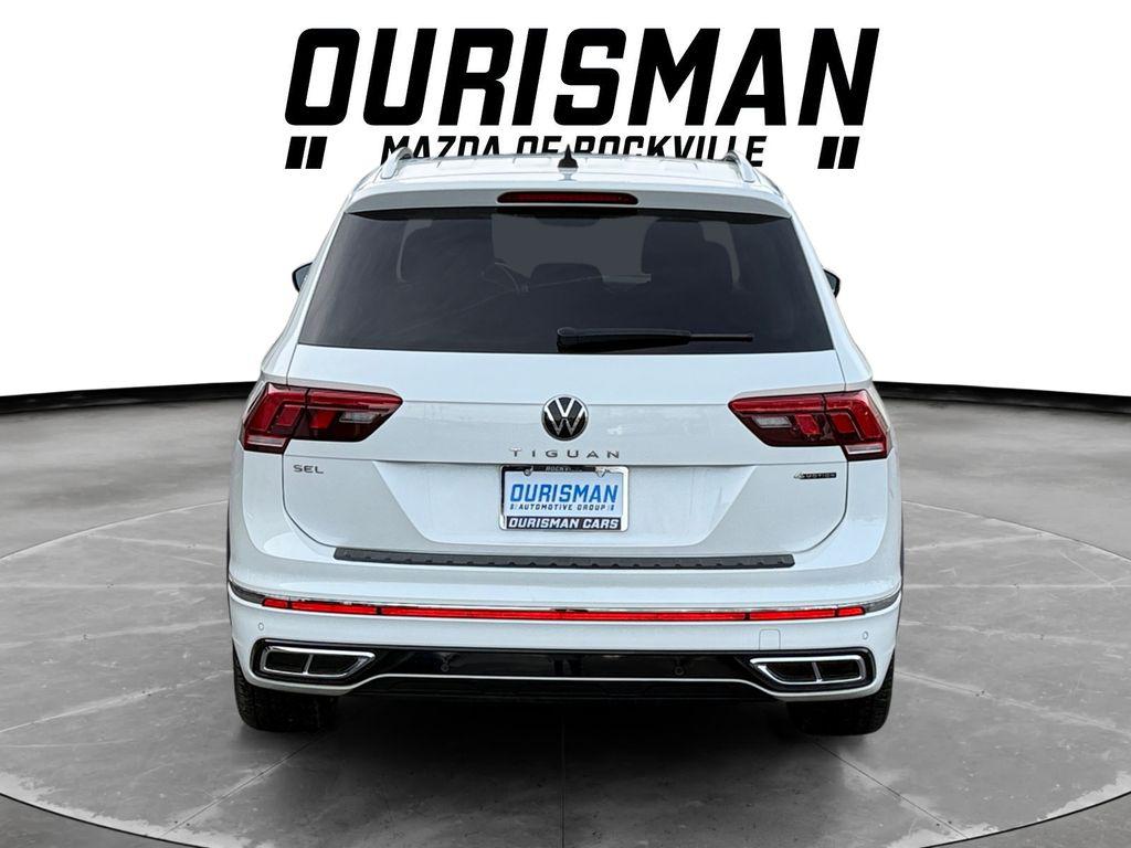 This 2023 White Volkswagen Tiguan 2.0T SEL R-Line AWD is in INCREDIBLE condition and includes these features and benefits: Clean CARFAX. 21/28 City/Highway MPG AWD.Ourisman Volkswagen Mazda of Rockville, MD has the DC Metro Area's best selection of Pre Owned Cars, SUV's and Trucks! Call us at (301) 424-7800 or email us now and lock in your special ""Promise Price"" on your next vehicle! Ourisman VW has been a leading provider of great deals and phenomenal prices for customers in the DC Metro Area for over 100 years. Our Ourisman VW Dealer specializes in new and pre-owned Volkswagen vehicles, Volkswagen Credit, Volkswagen Service, and Volkswagen parts. Our knowledgeable Volkswagen Sales and Volkswagen Service Teams have been trained and certified by Volkswagen to provide top notch customer service. Since Ourisman Volkswagen has been selling and servicing Maryland, Virginia and DC for such a long time, our experience is second to none! Just check out our reviews online! Ourisman VW proudly serves the Washington DC Metro Area, Fairfax, Alexandria, Arlington, Falls Church, Bethesda, Rockville, Gaithersburg, Chevy Chase, Laurel, Tysons Corner, Centreville, Manassas, Haymarket, Gainesville, Vienna, Suitland, LaPlata, Leonardtown, Prince Frederick, Lexington Park, Upper Marlboro. ALL of Charles County, Calvert County and St. Marys County. Used & Certified Vehicle Prices do not include tax, tags, title, registration, electronic filing fee, processing fee of $800 (Not required by law), and iKon (Optional $1,295.)
